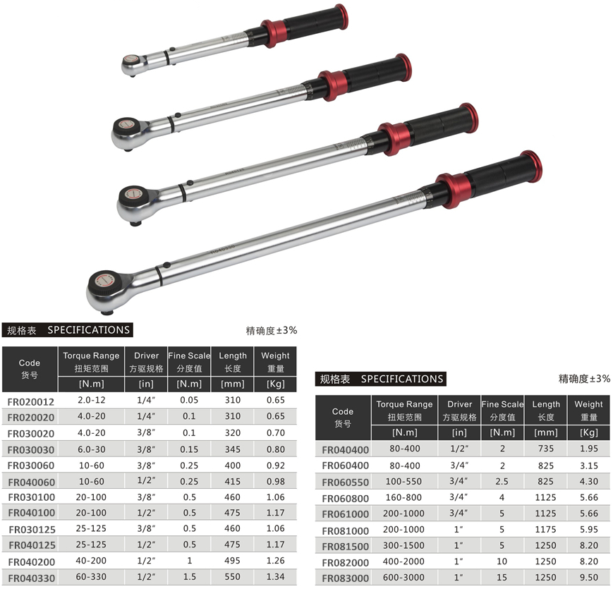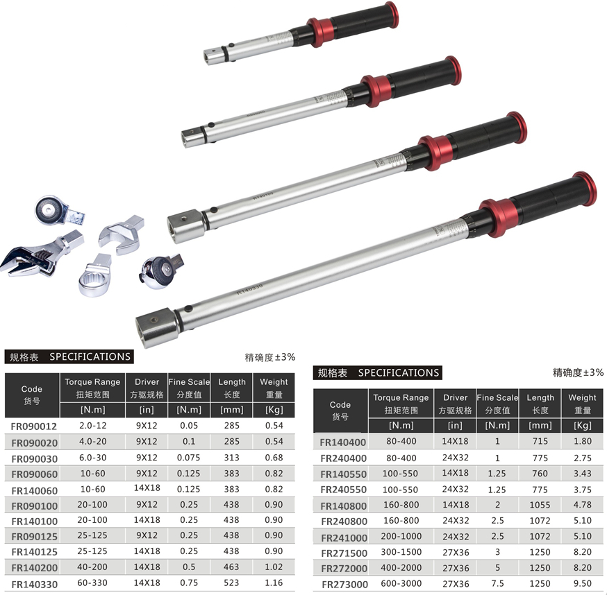 ·設定扭矩達到時有雙重提示:1、感觸提醒 2、“咔嗒”響聲提醒。