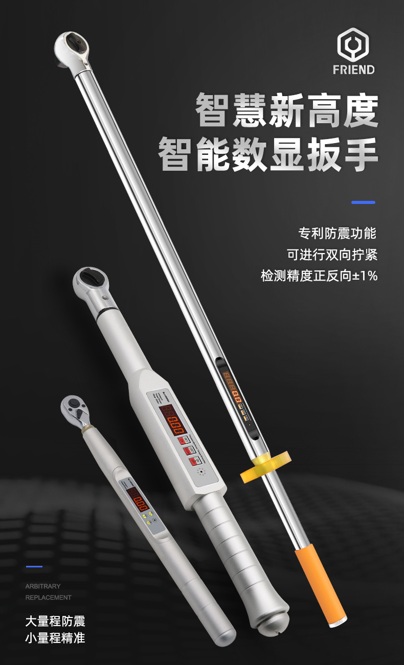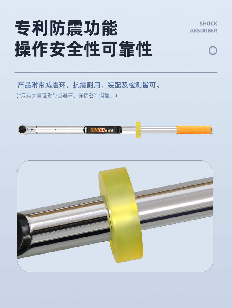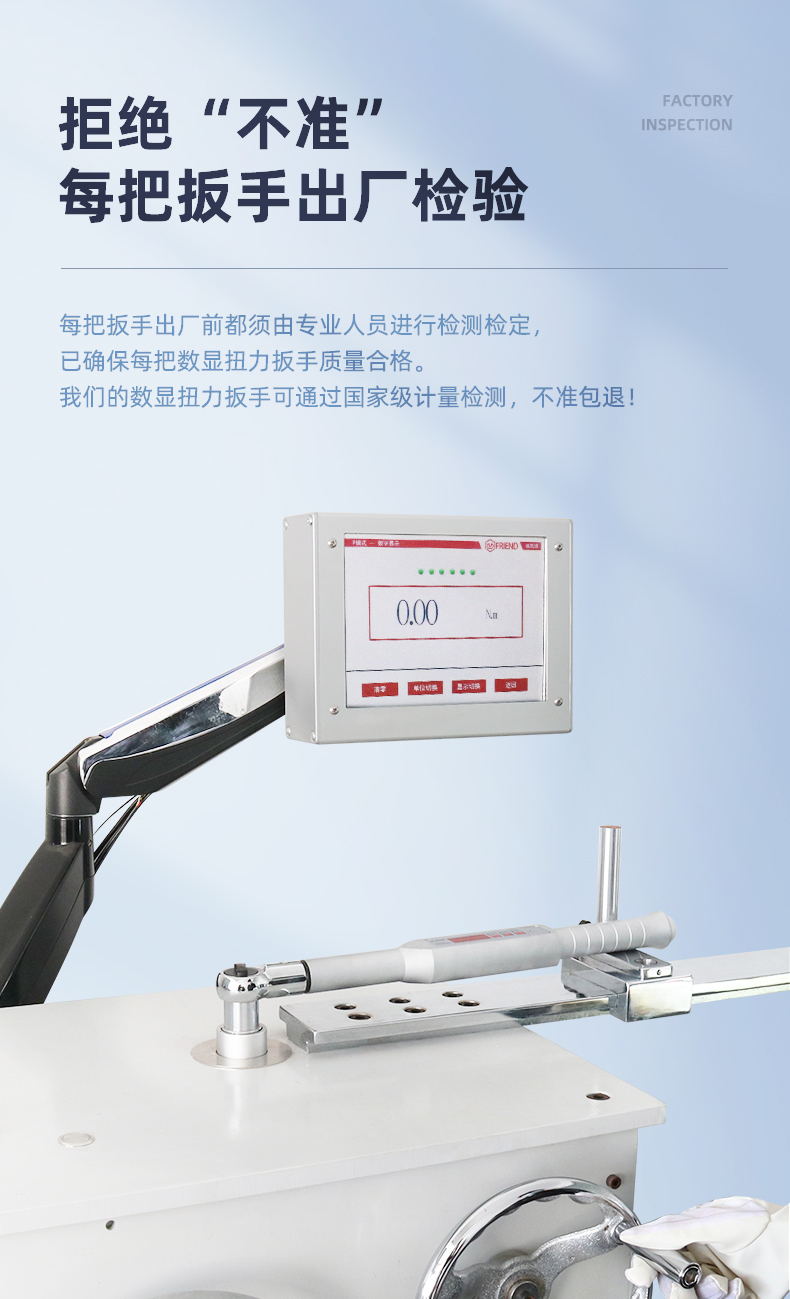 1%,數(shù)值直觀準(zhǔn)確,性能穩(wěn)定,操作方便,性?xún)r(jià)比高。產(chǎn)品附帶減震環(huán),抗震耐用,裝配及檢測(cè)皆可,是緊固力矩理想的配套工具??蓮V泛用于航空,航天,船舶,鐵路,建筑,汽車(chē),摩托車(chē),精密機(jī)械,礦業(yè)機(jī)械,電力系統(tǒng)等對(duì)緊固力矩有嚴(yán)格要求的螺紋部件安裝。通過(guò)14年不斷提升發(fā)展,此系列智能數(shù)顯扭力扳手已升級(jí)為6.0版本。