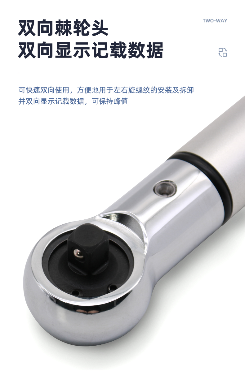 扳頭采用棘輪式,可快速雙向使用,方便地用于左,右旋螺紋的安裝及拆卸,并雙向顯示記載數(shù)據(jù),可保持峰值。其測(cè)量精度高±